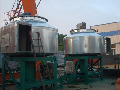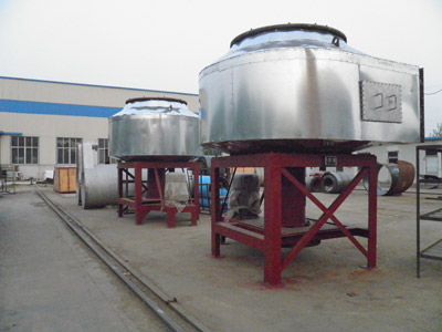 热空气切向进入干燥器底部,物料由螺旋加料器加入干燥器内,在高速旋转搅拌桨的强烈作用下,块状物料不断受到撞击、磨擦及剪切作用而被粉碎,并与热空气充分接触、换热、达到干燥的目的。脱水后的干物料随热气流上升,分级环将大颗粒截留,小颗粒从环中心排出干燥器外,由旋风分离器和除尘器回收,未干透或大块物料受离心力作用甩向器壁,重新落到底部被粉碎干燥。