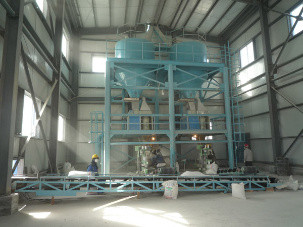我公司根据西部地理条件设计生产的钾肥干燥成套系统包括高效煤粉机、干燥/冷却主机、除尘及包装系统。